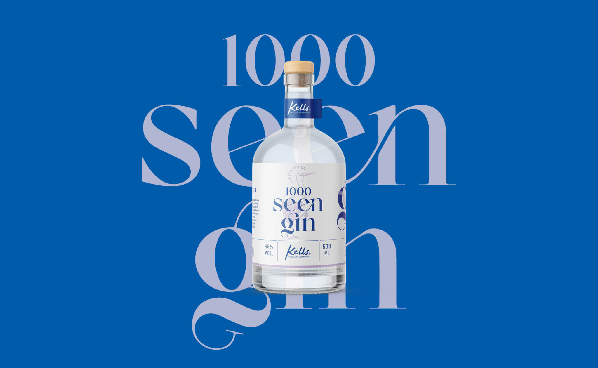 Wir glauben an „Liebe auf den ersten Gin“. Das Etikettendesign zeigt 3 Sondereditionen für den 1000-Seen-Gin. Prost.