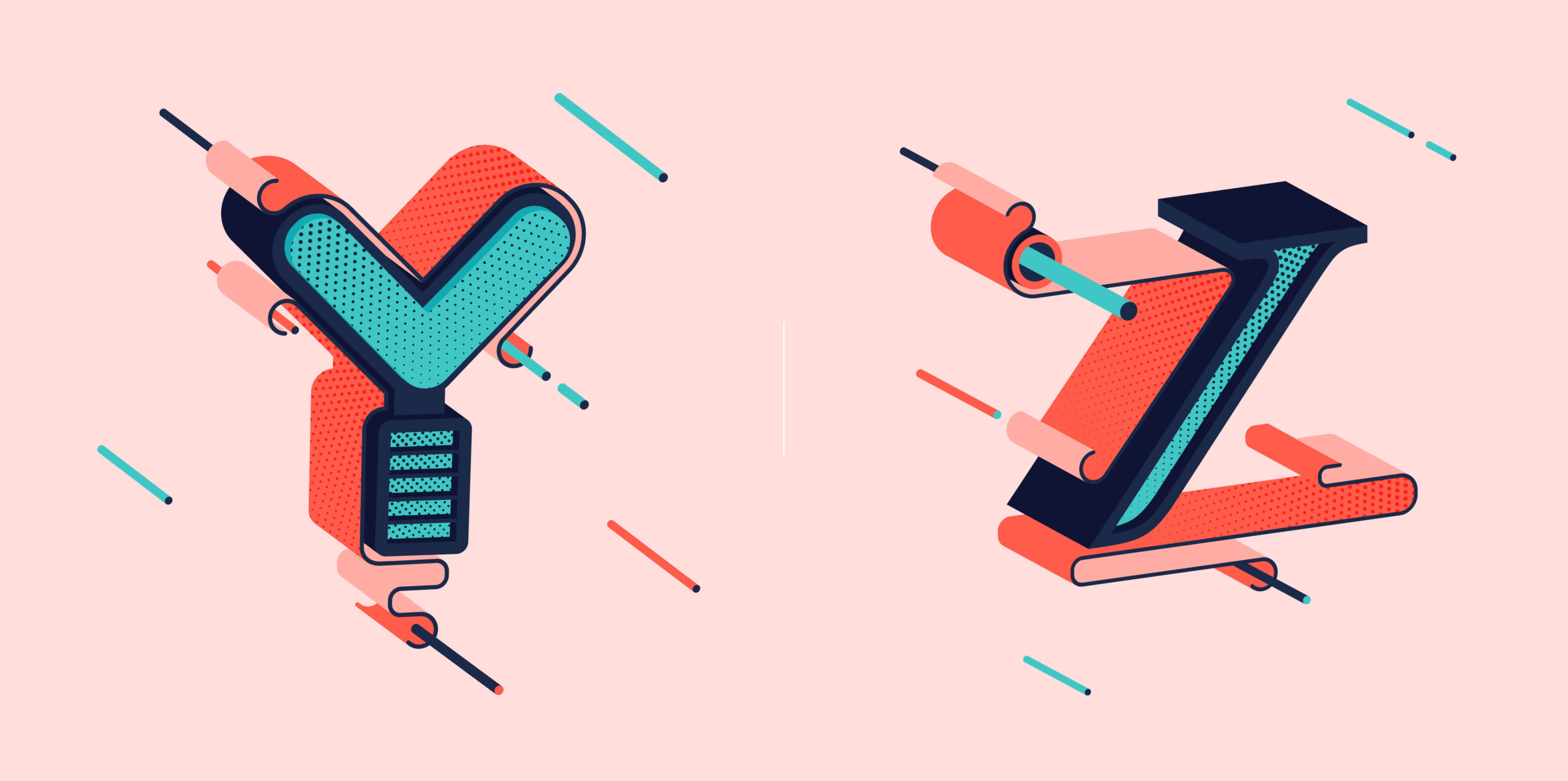 36 days of type is a personal fun project to create one letter a day. „36 days of type“ ist ein persönliches Projekt an dem jeden Tag ein Buchstabe gezeichnet wurde.