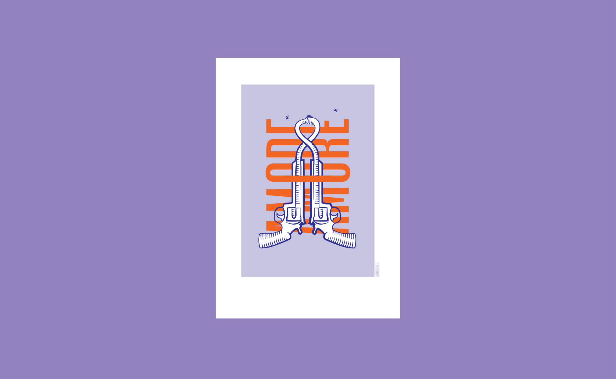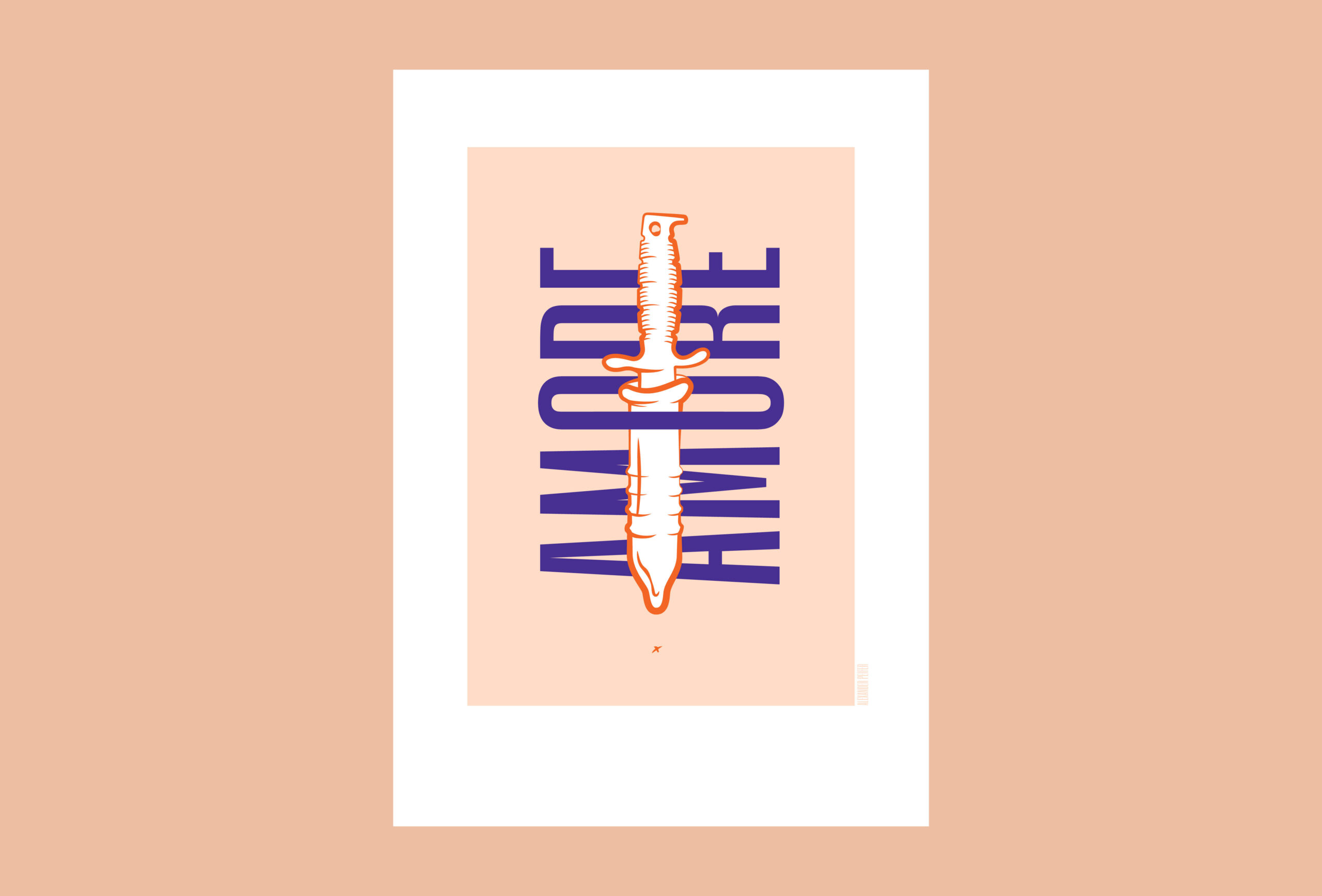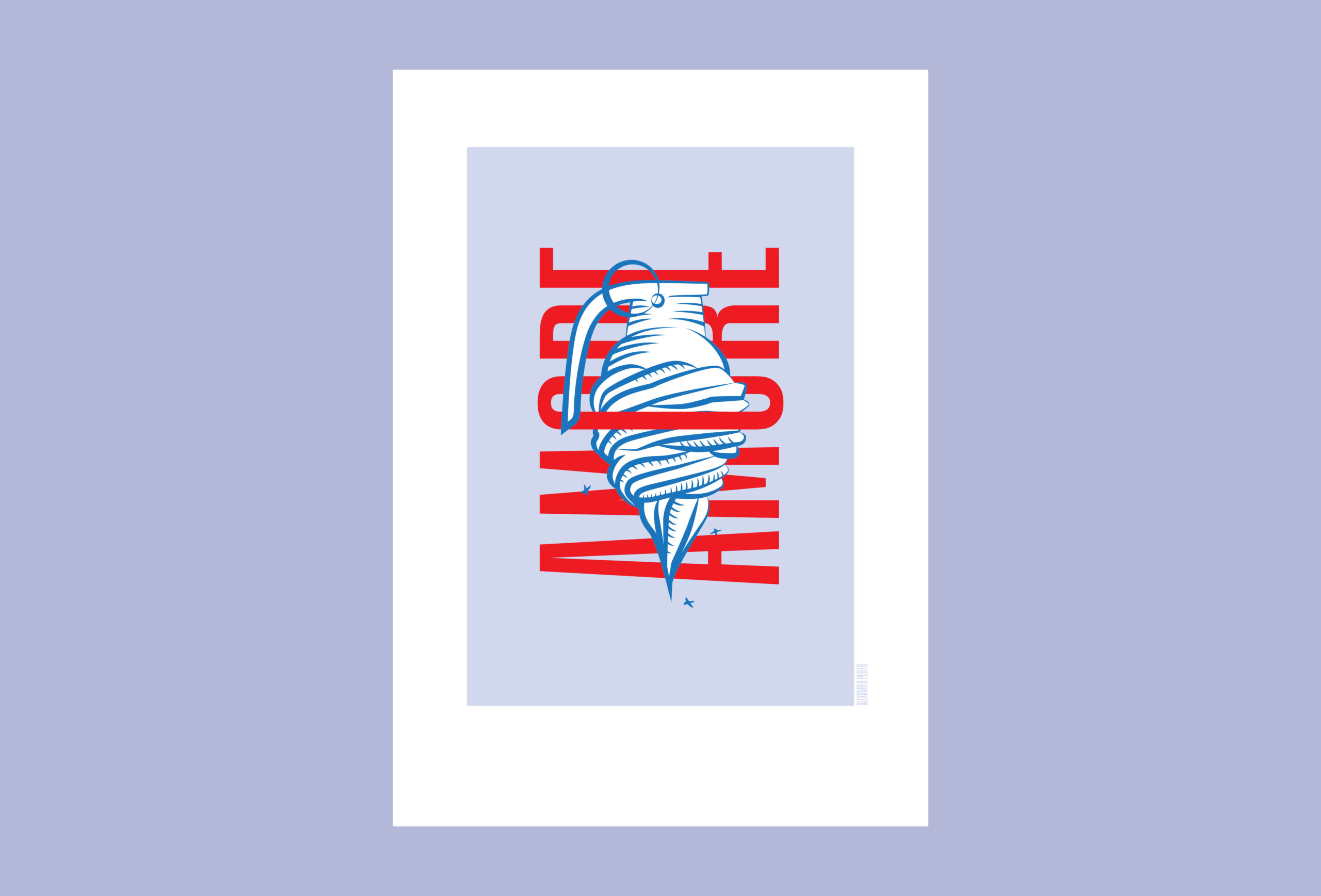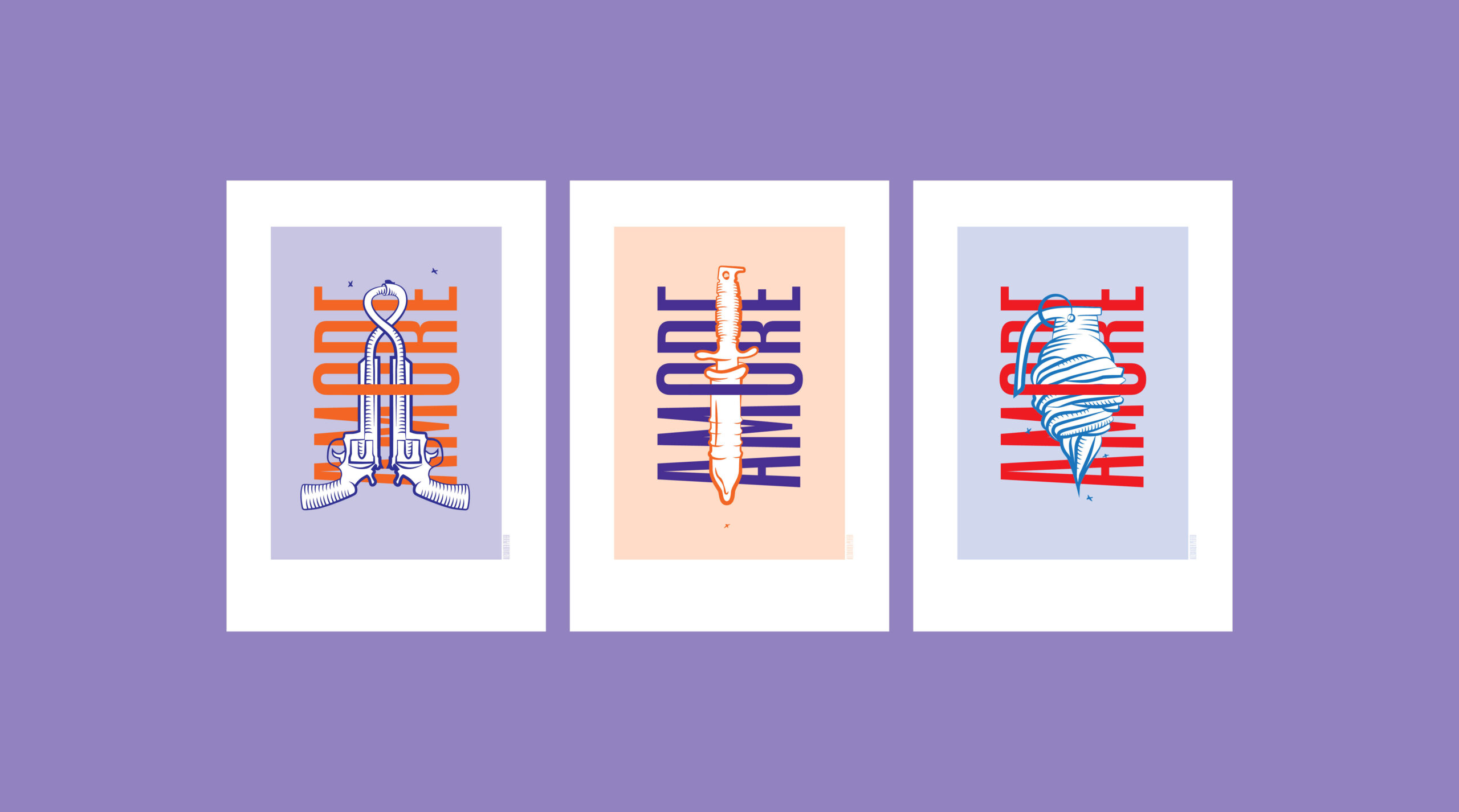 Amore is in the air. Poster und Animation – Perfekte Kombination aus Analog und Digital. Die Posterserie wurde im Riso Print Verfahren erstellt für eine Ausstellung in Luxemburg.