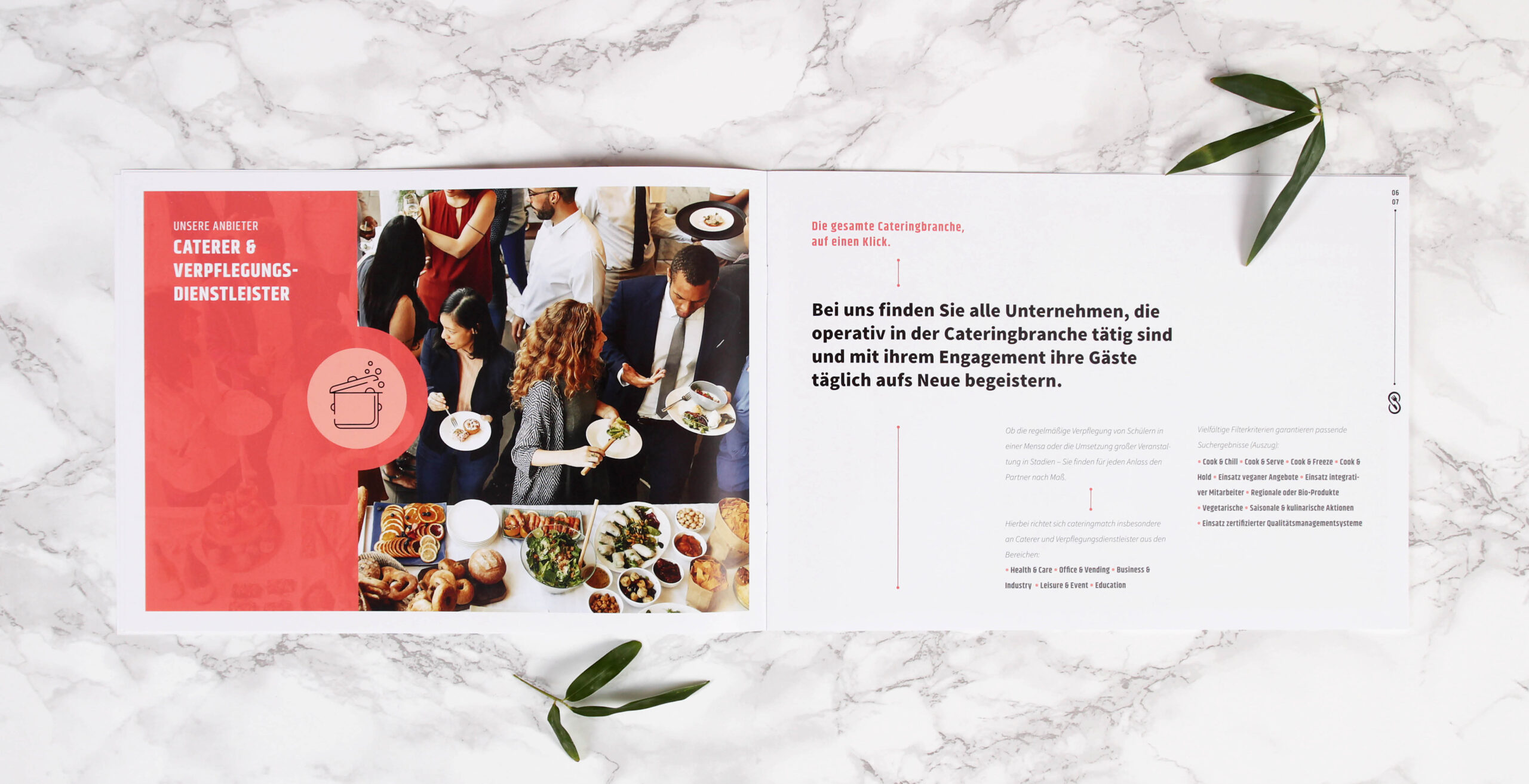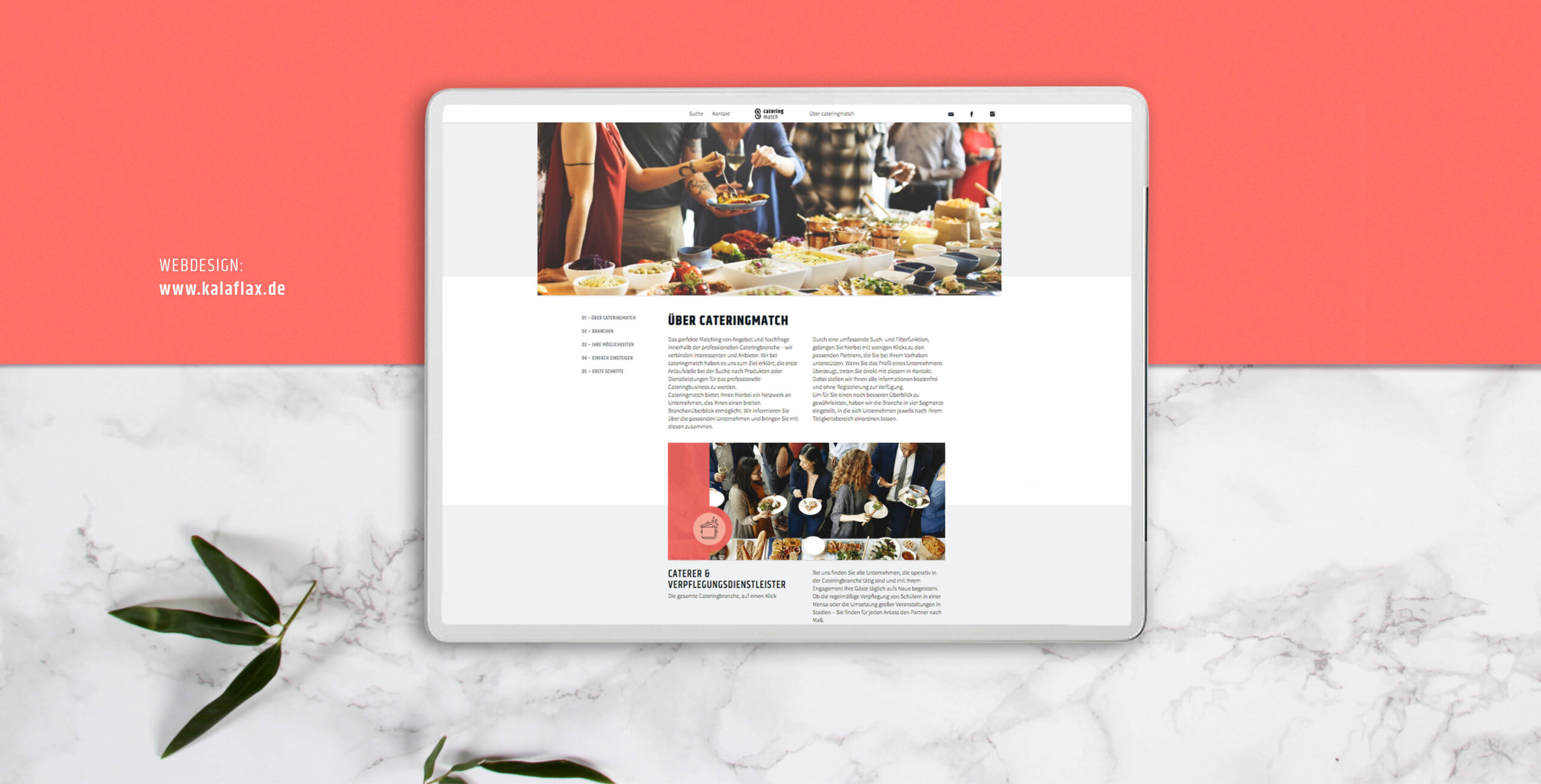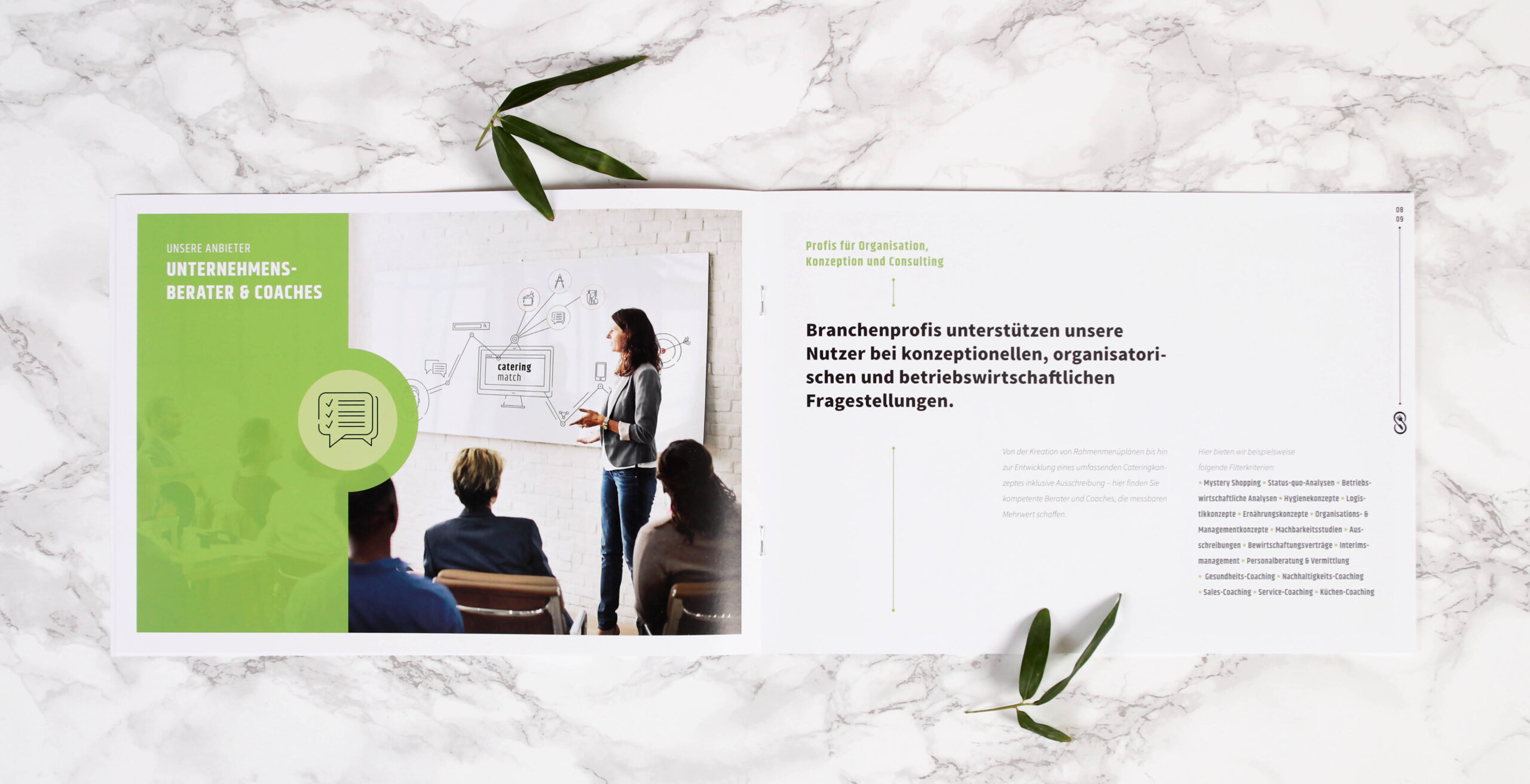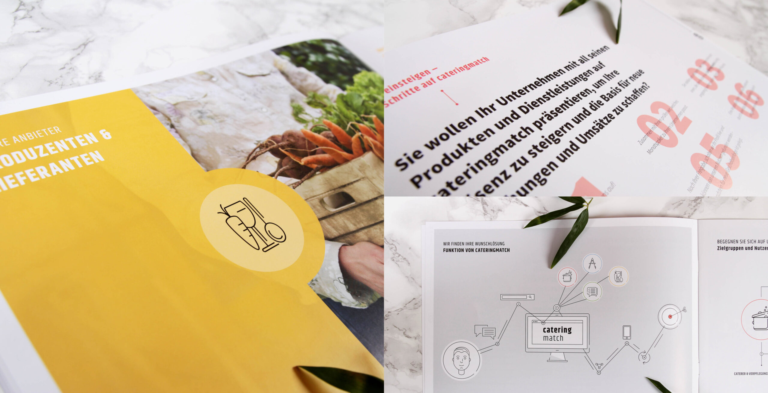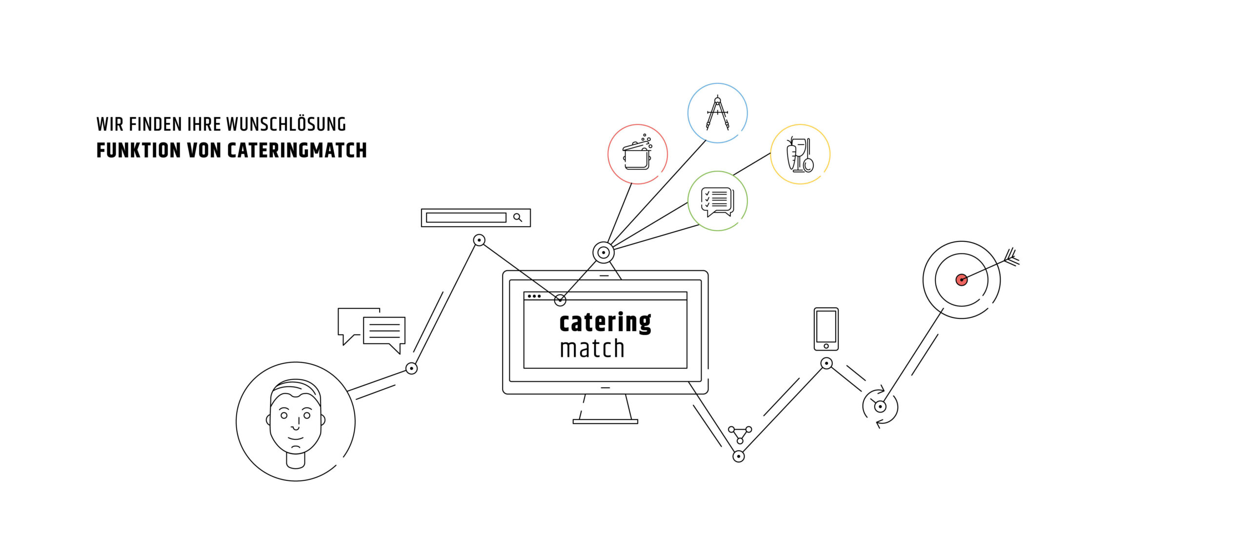 Catering Match vereint Catering Unternehmen. Lieferanten und Produzenten auf einer Online-Plattform. Es entstand ein umfangreiches Corporate Design, Logo, Icons, Geschäftsausstattung, Broschüre, Mappe, verschiedene Visuals, Infografiken und ein Cl Handbuch.